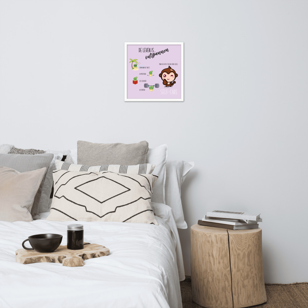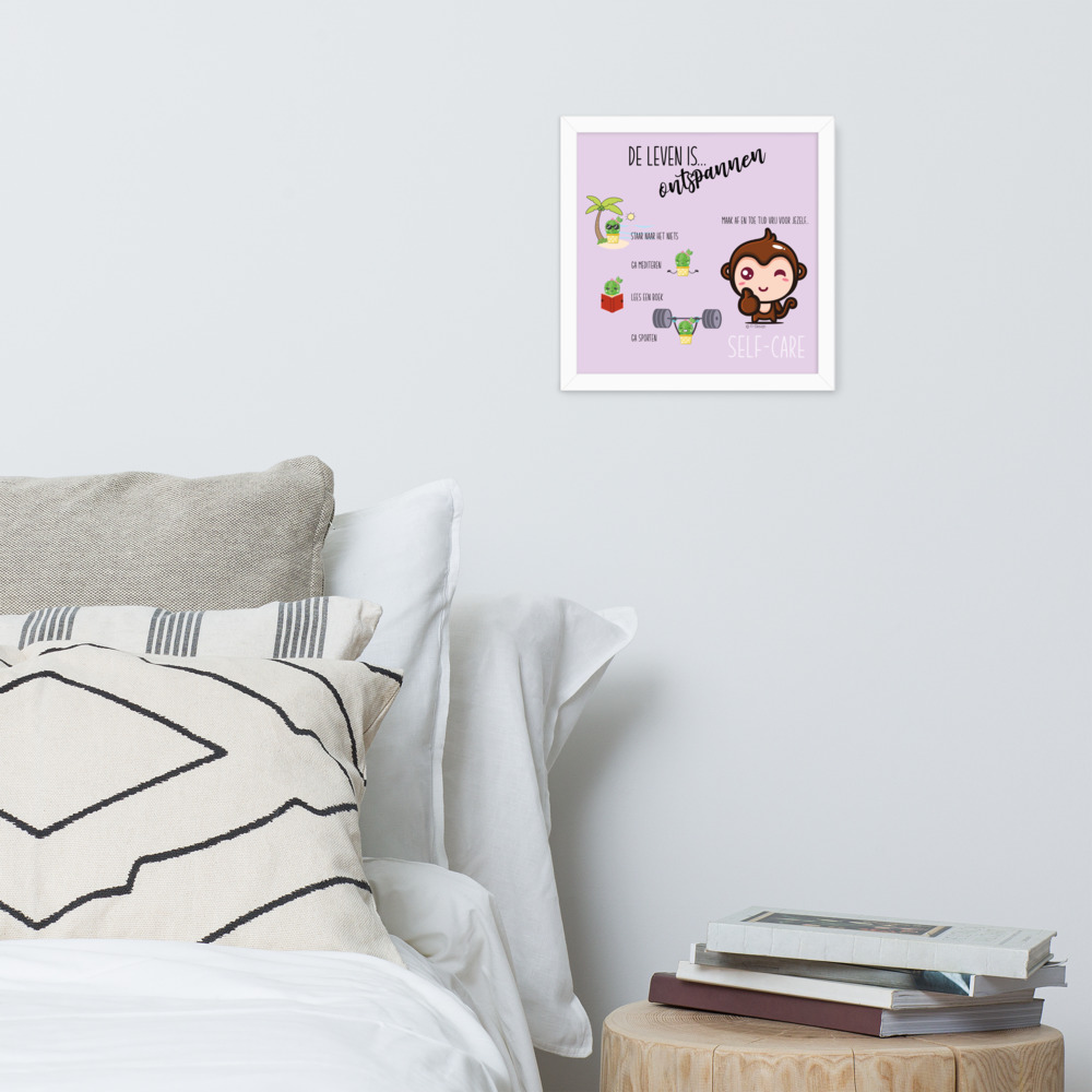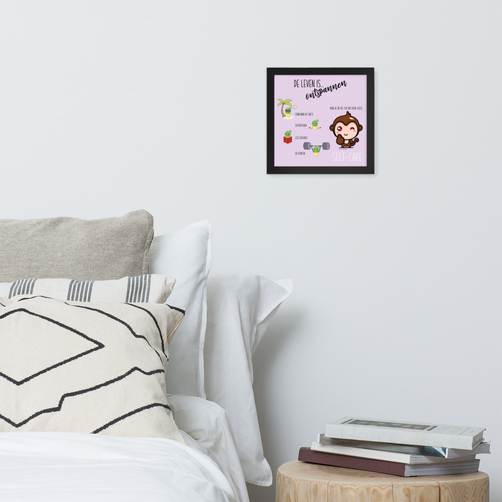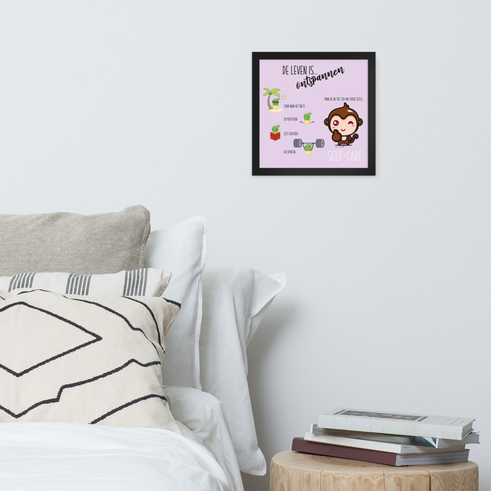 Een ingelijste poster, geprint op dik, duurzaam, mat papier. De matzwarte lijst die gemaakt is van hout uit duurzame bossen, geeft nog wat extra klasse.